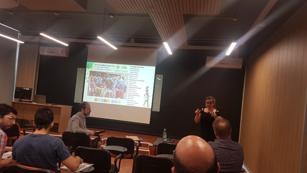 En la ocasión, Lorena Lobos mostró su investigación en exosomas microRNAs y cáncer, como nueva línea de desarrollo del Centro de medicina Regenerativa.