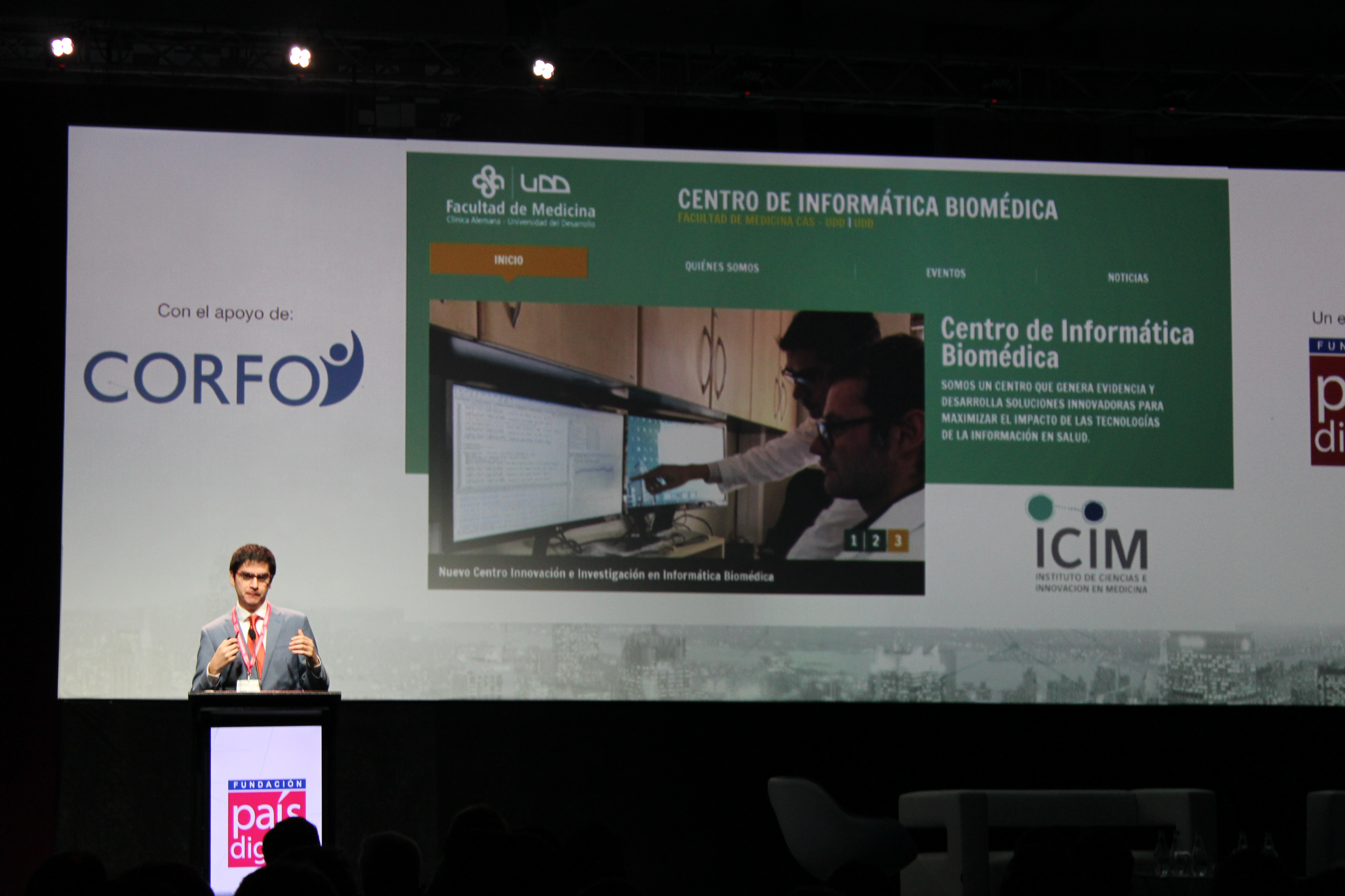 En el marco del Simposio de Salud organizado por la Fundación País Digital en el Hotel W el pasado 18 y 19 de julio, se realizó el lanzamiento del nuevo Centro de Informática Biomédica del Instituto de Ciencias e Innovación en Medicina (ICIM), perteneciente a la Facultad de Medicina Clínica Alemana Universidad del Desarrollo.