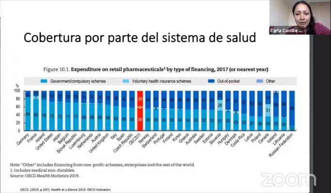 En este contexto, Carla Castillo realizó la conferencia “Experiencia internacional en cobertura, acceso y políticas de regulación de precios de medicamentos”, donde abordó – entre otros temas – la brecha existente entre los países desarrollados y en vías de desarrollo, el mercado de los medicamentos y cómo éste impone desafíos a los sistemas, dónde no sólo es importante la cobertura, sino también la eficiencia.