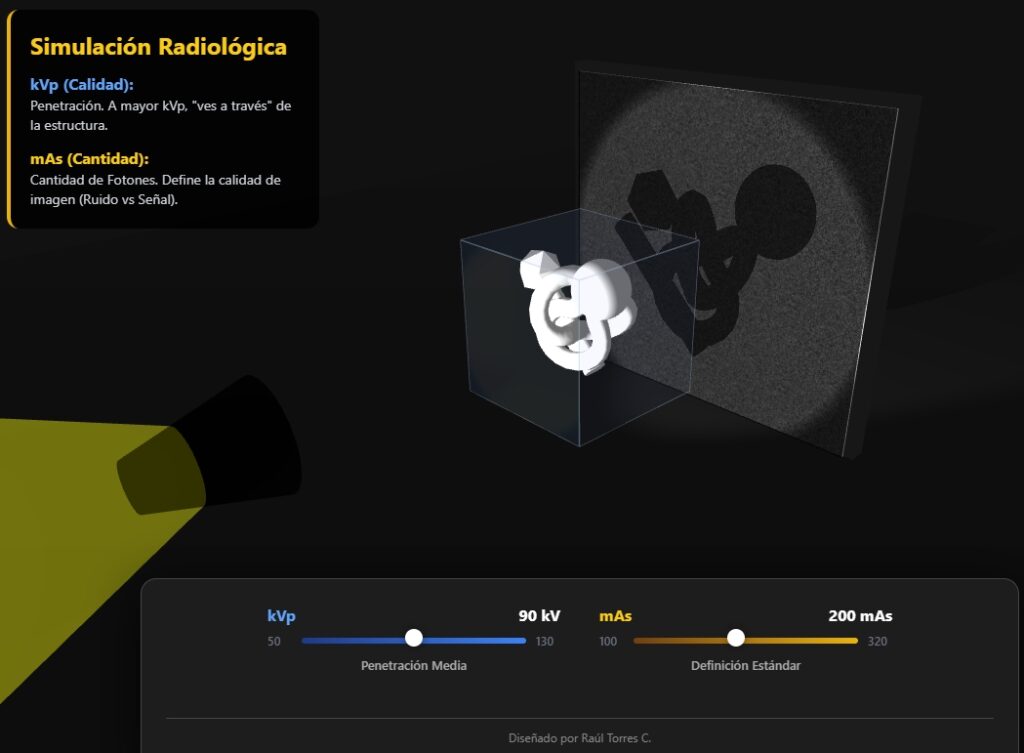 mAs: “mili Ampere segundo”, refiere a la cantidad de fotones que interactúa con la materia, mientras mayor sea, mayor irradiación ósea mayor probabilidad de daño celular, pero mejora la calidad de la imagen disminuyendo la “penumbra” y aumenta el “ruido electrónico”.