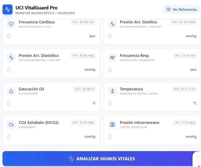 “UCI Vital Guard Pro” Aplicación que permite evaluar los signos vitales. de un paciente, el instrumento requerido para ello y levantar alarmas cuando los valores son relevantes y sugerir una hipótesis que lo causa.