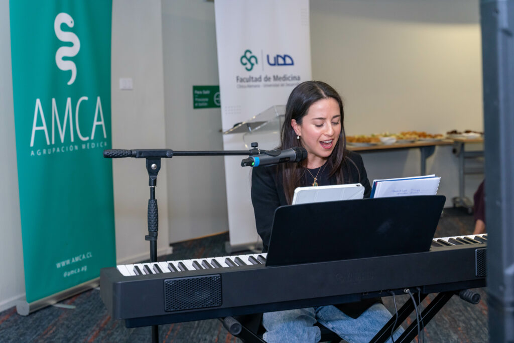 Al cierre de la ceremonia, la residente de primer año de pediatría Camila Henríquez deleitó a los presentes con una emotiva interpretación de canciones en voz y teclado.