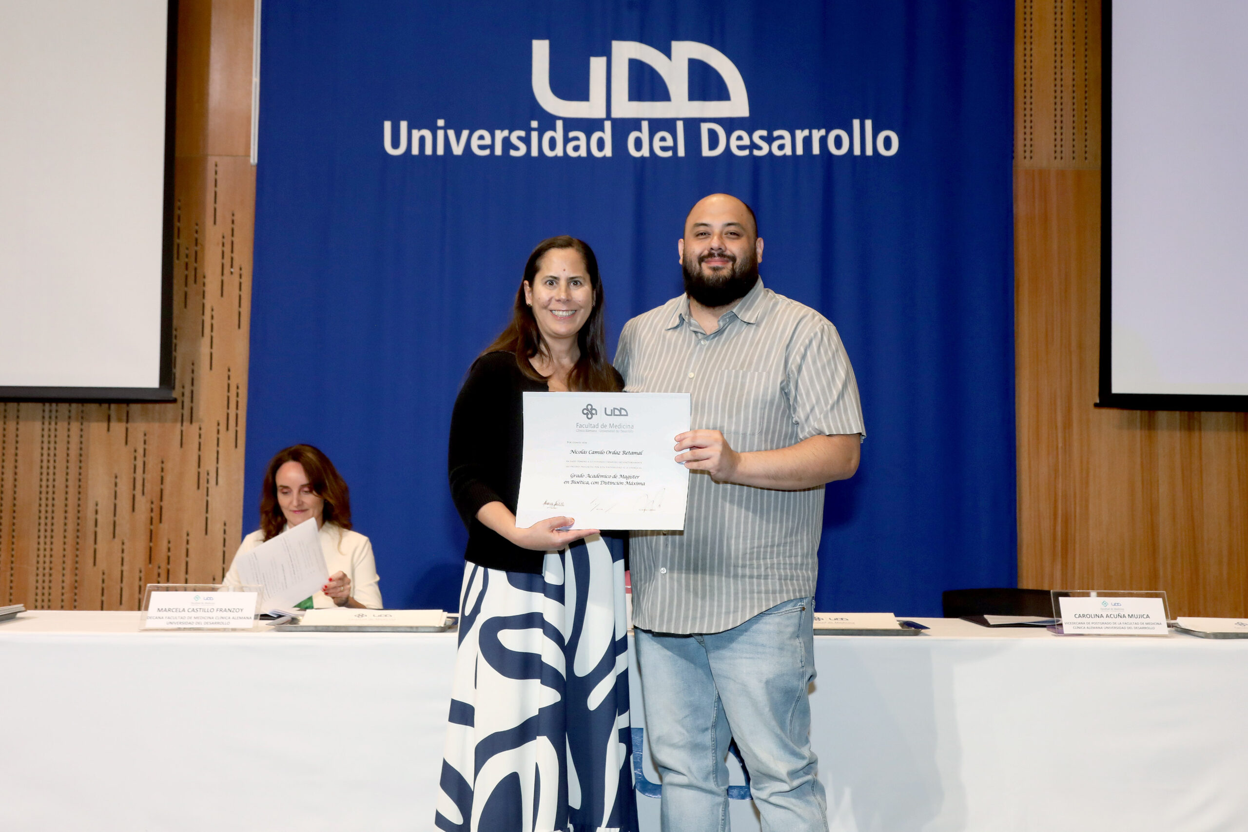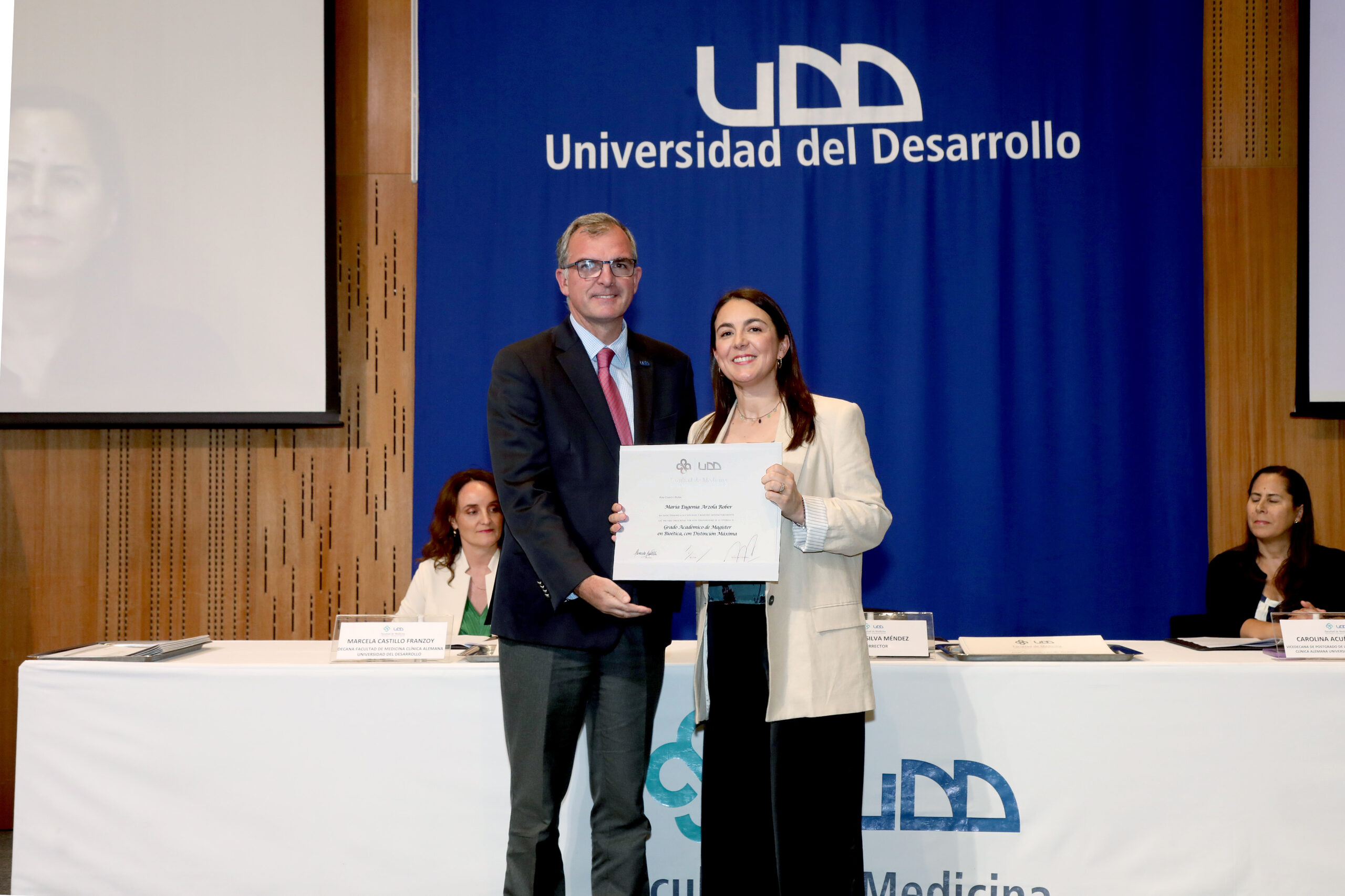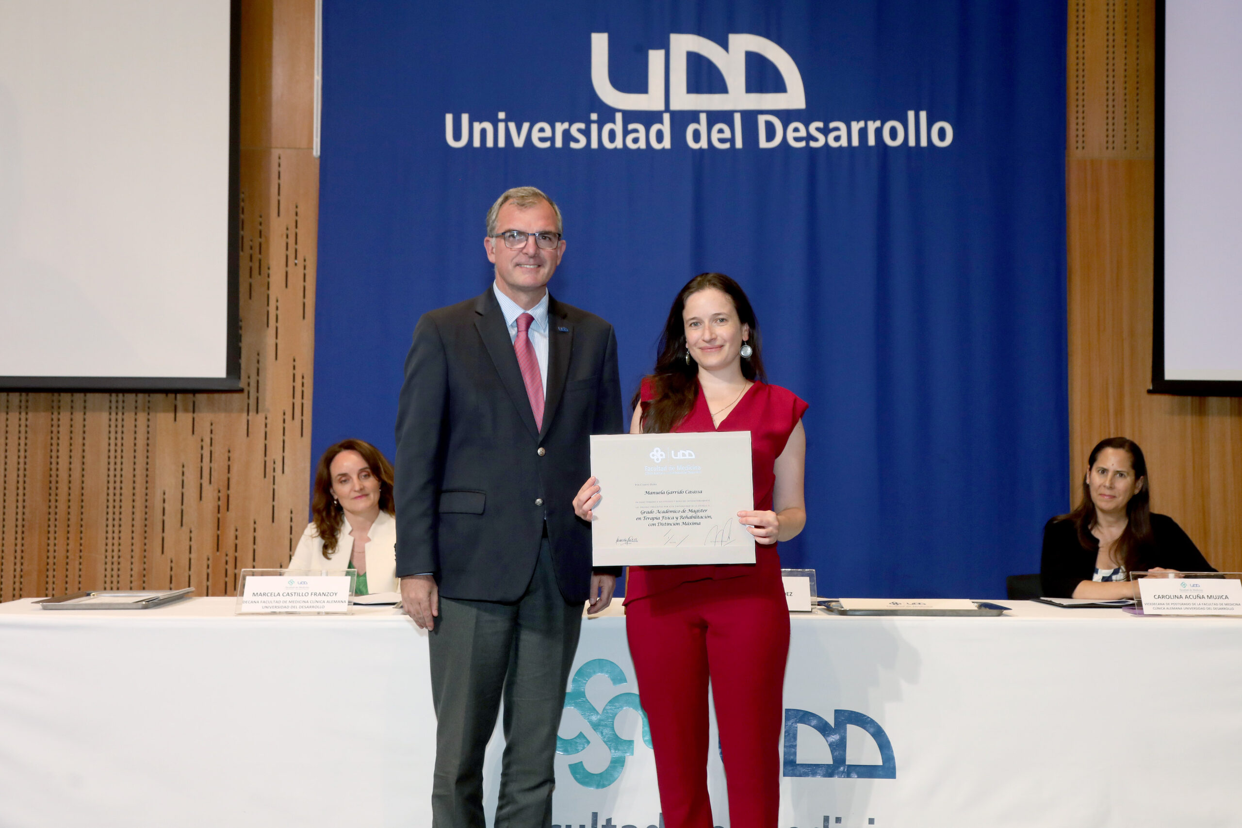 El evento fue presidido por el prorrector de la UDD, Ernesto Silva Méndez; la decana de la Facultad de Medicina, Dra. Marcela Castillo; y la vicedecana de Postgrado, Dra. Carolina Acuña, y contó con la presencia de directores, coordinadores, docentes, familiares y amigos, quienes dieron un marco de celebración y orgullo a la jornada.