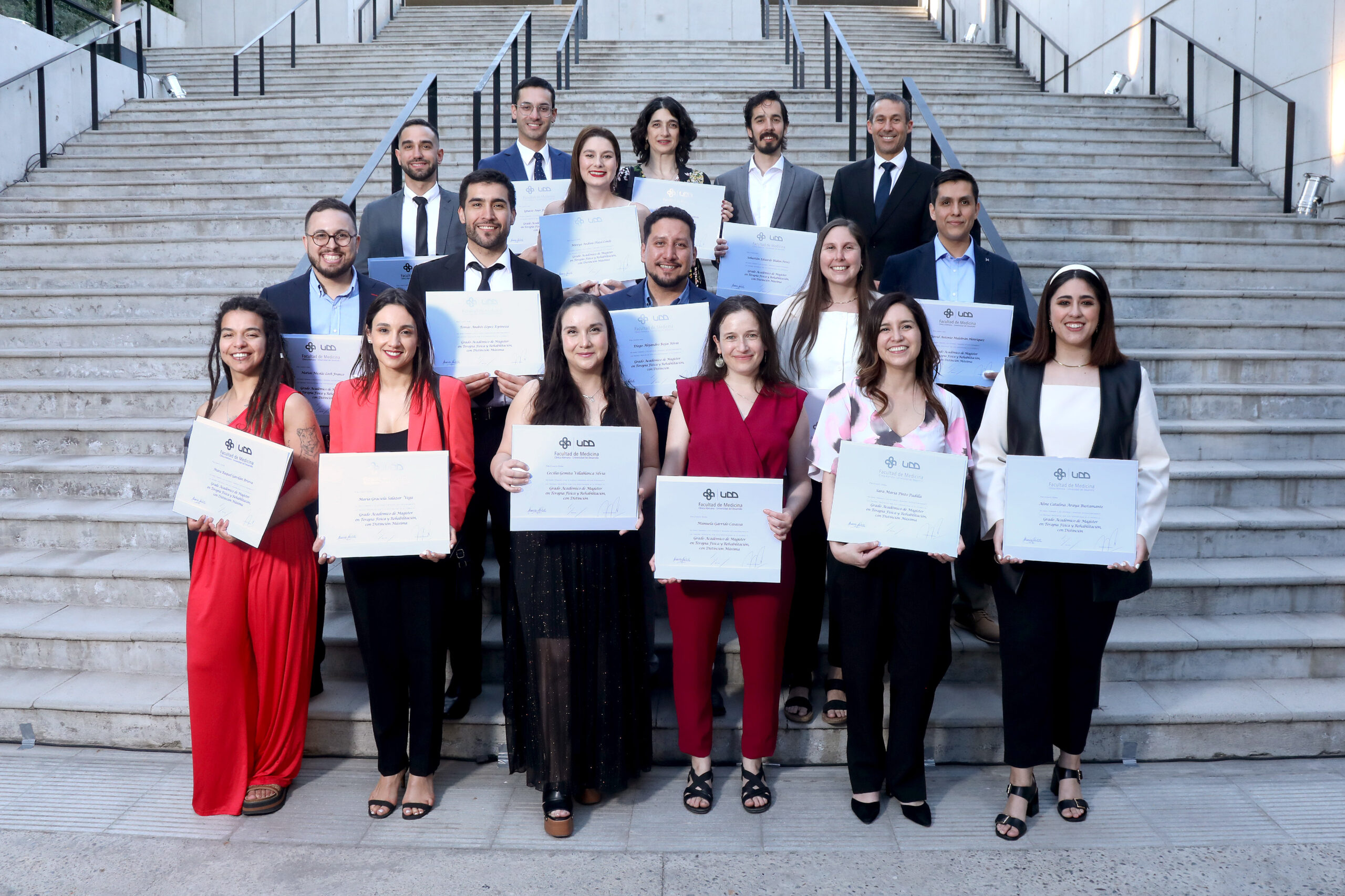 Este miércoles 19 de noviembre se realizó la ceremonia de graduación del Magíster Interuniversitario en Bioética y del Magíster en Terapia Física y Rehabilitación (MAKI) de la Facultad de Medicina Clínica Alemana Universidad del Desarrollo (UDD), instancia en la que 29 profesionales recibieron sus diplomas que los acreditan como nuevos magísteres.