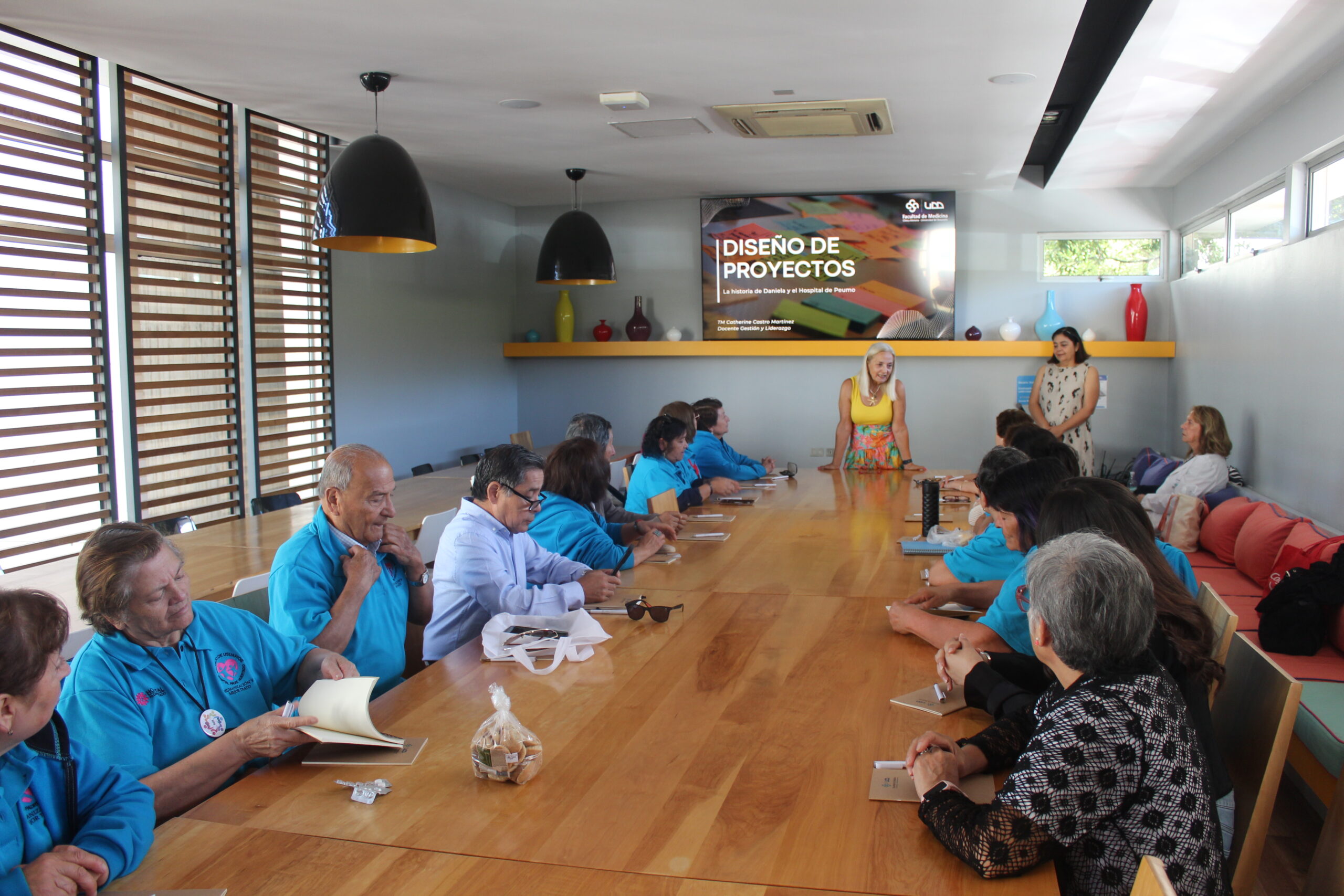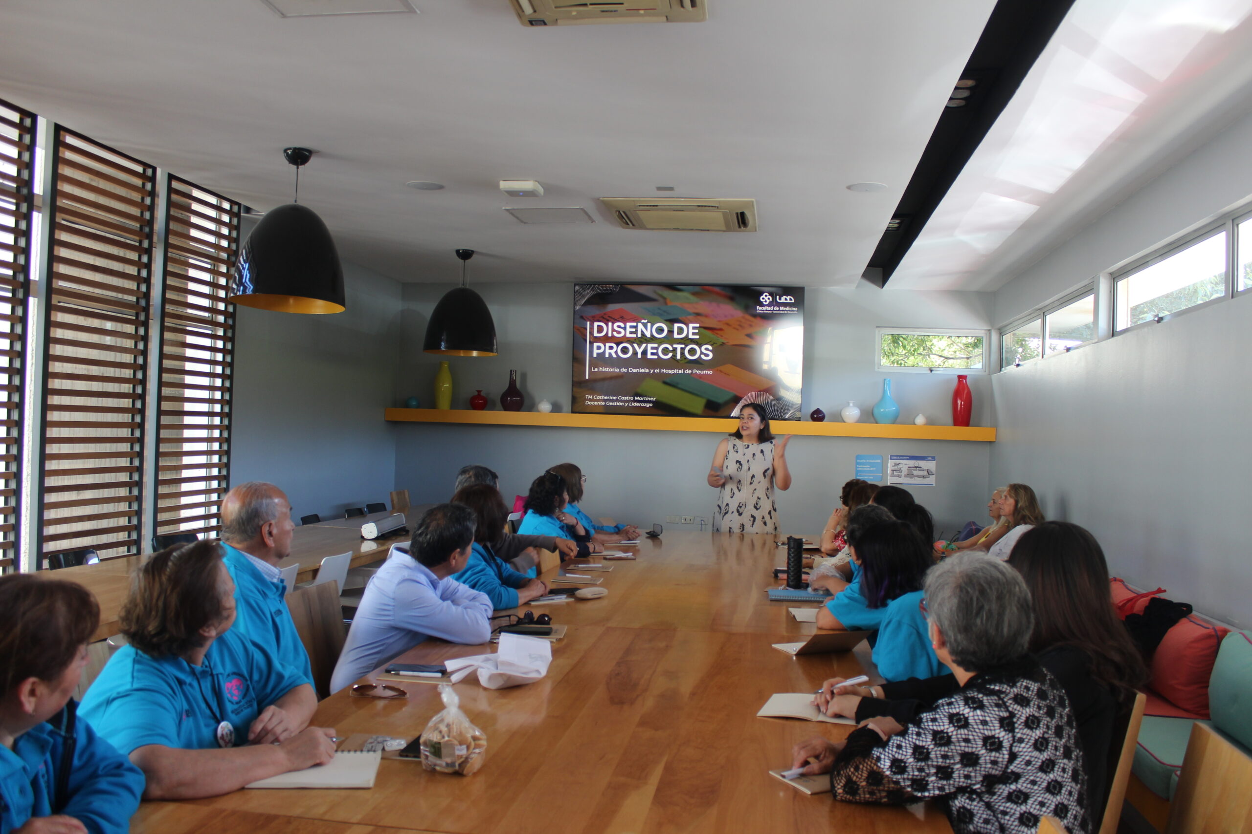 La delegación fue recibida por la decana de la Facultad de Medicina, Dra. Marcela Castillo, y por la vicedecana de las carreras de la salud, Dra. Liliana Jadue. Durante la jornada, los asistentes participaron en el taller “Diseño de Proyectos”, impartido por Catherine Castro, directora de Gestión Académica de la Facultad de Medicina. En esta instancia, los integrantes del Consejo pudieron conocer y aprender sobre metodologías y estrategias para la formulación y gestión de proyectos, con el objetivo de fortalecer su labor y proponer a la Dirección del hospital soluciones a temas relevantes para los usuarios, alineadas con el cumplimiento de los objetivos institucionales y la mejora continua de los servicios de salud.