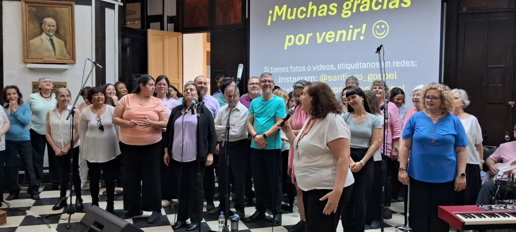 El viernes 12 de diciembre, el Instituto Nacional del Cáncer (INC) acogió la presentación del Coro Santiago Gospel, agrupación comunitaria y ecuménica con más de diez años de trayectoria. Integrado por más de 60 voces, el coro presentó el proyecto “Evermore”, una propuesta que une alabanza, espiritualidad y fuerza colectiva a través del gospel. Cabe señalar que esta presentación fue posible gracias a la participación de María Alejandra Cura, enfermera de la Subdirección Médica de Desarrollo Institucional del INC e integrante del coro.