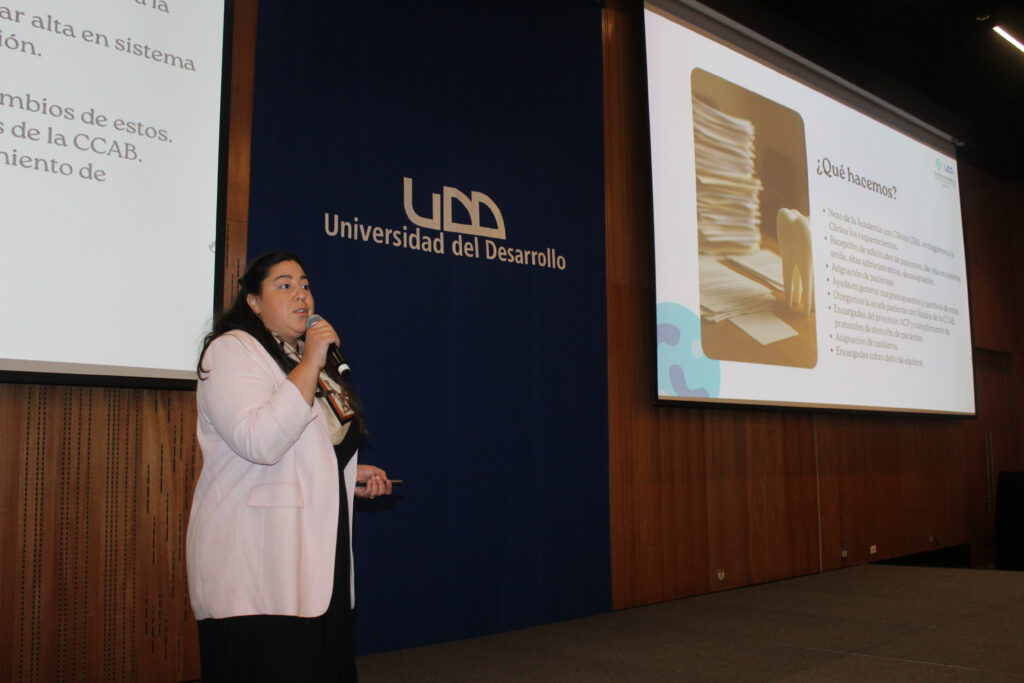 La jornada comenzó con la acreditación de los asistentes y el inicio formal de la actividad, para luego dar paso a las palabras de bienvenida de la directora de Postgrados de la Universidad del Desarrollo, Javiera Zúñiga, quien destacó la relevancia de la formación continua y el desarrollo profesional en el área de la salud.