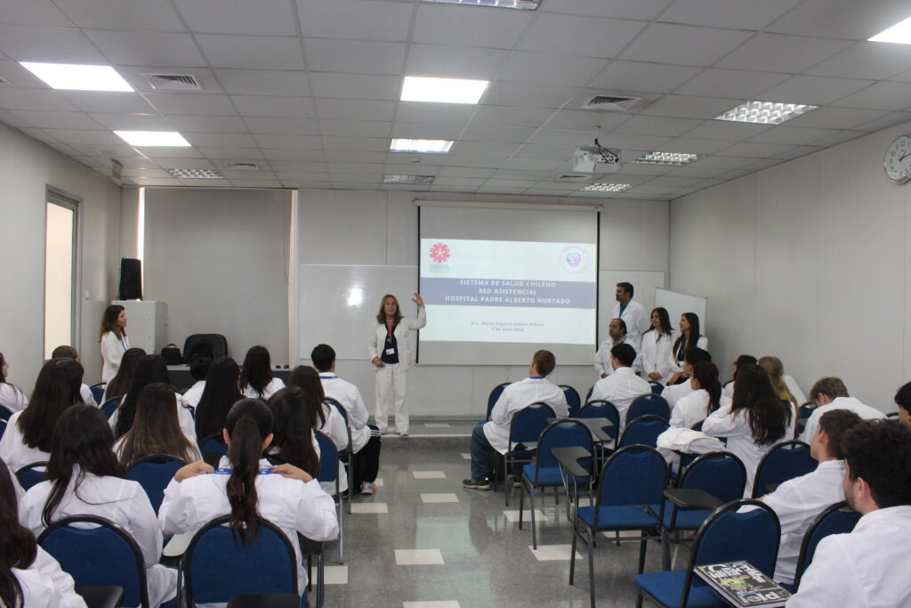 Con el objetivo de acercar tempranamente a los estudiantes al entorno hospitalario, alumnos de primer año de la carrera de Ingeniería Civil en BioMedicina de la Universidad del Desarrollo (UDD) realizaron su primera visita al Hospital Padre Hurtado (HPH), principal campo clínico de la Facultad de Medicina Clínica Alemana UDD.