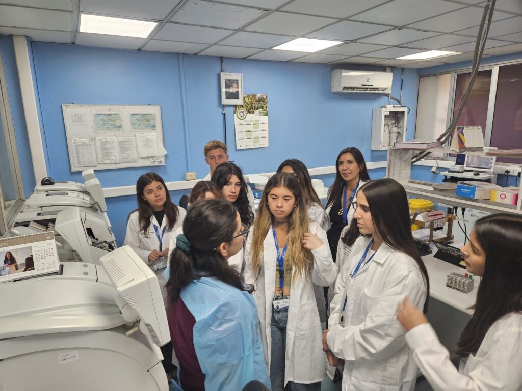 Durante el recorrido, los estudiantes conocieron en terreno el funcionamiento de distintas unidades clave del hospital, entre ellas el laboratorio clínico, la farmacia, el servicio de imagenología y los gimnasios de rehabilitación, tanto cardiológica y ambulatoria. Esta experiencia les permitió observar cómo se integran la tecnología y la gestión clínica en el trabajo cotidiano de los equipos de salud.