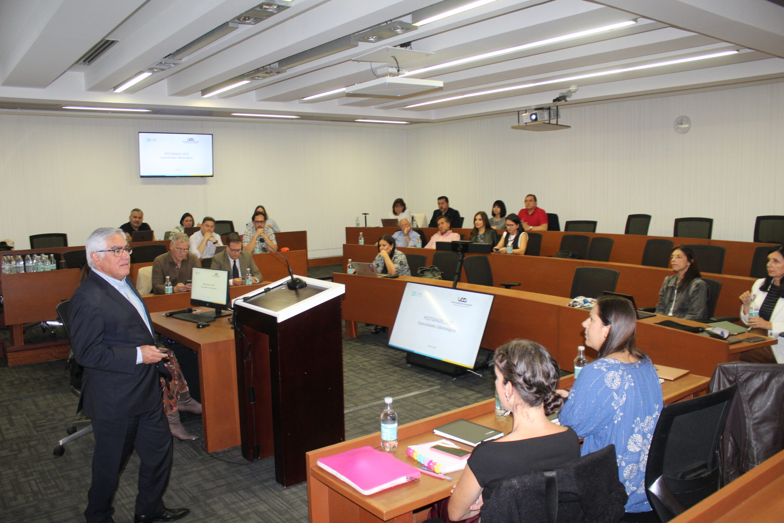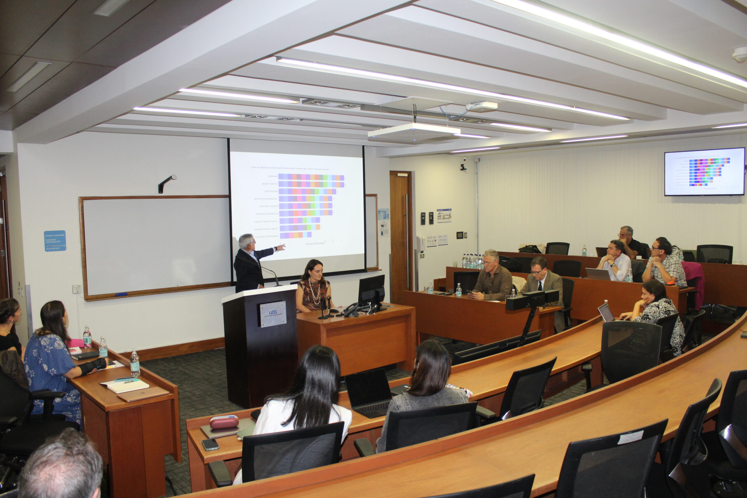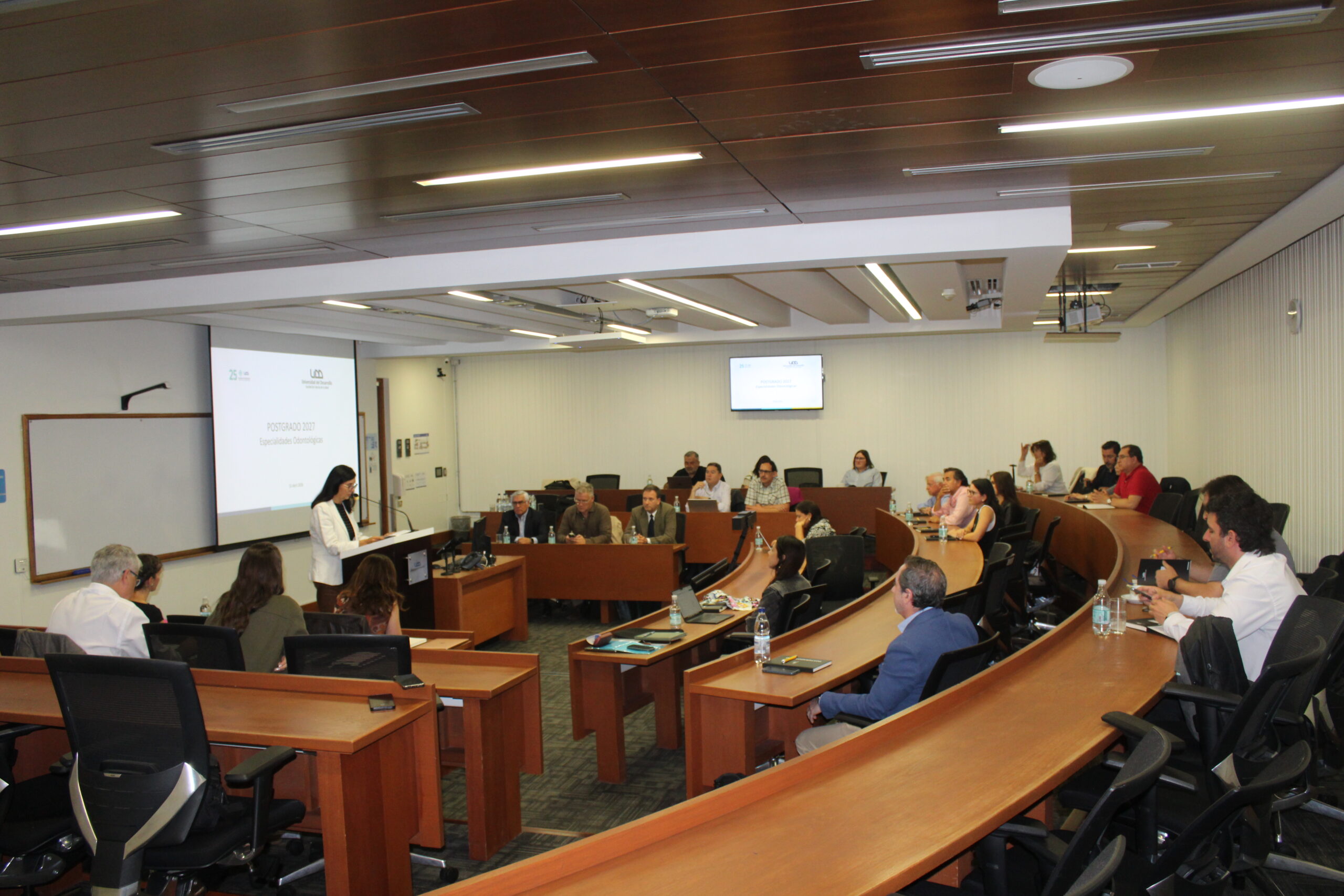 Este viernes 10 de abril, en el campus Rector Ernesto Silva Bafalluy de la Universidad del Desarrollo, se llevó a cabo una Jornada de Especialidades Odontológicas que reunió a autoridades, directores y coordinadores de programas de Santiago y Concepción, con el objetivo de trabajar en la construcción de un Plan Común para las especialidades odontológicas de la institución.