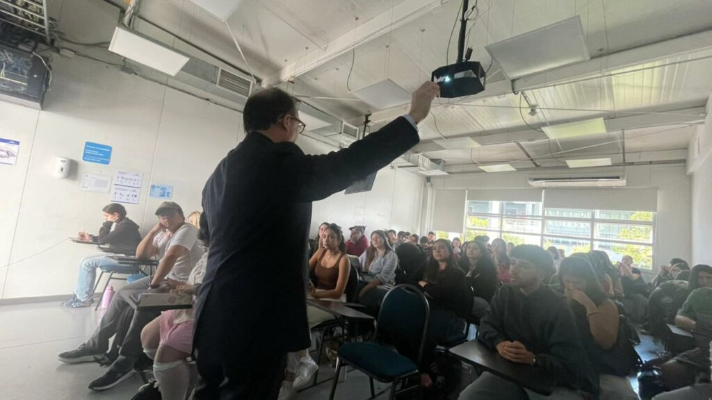 Posterior a la reunión, Efrén Elías compartió con estudiantes de la carrera de Química y Farmacia, fortaleciendo el vínculo entre la academia y los organismos internacionales dedicados a la calidad farmacéutica.