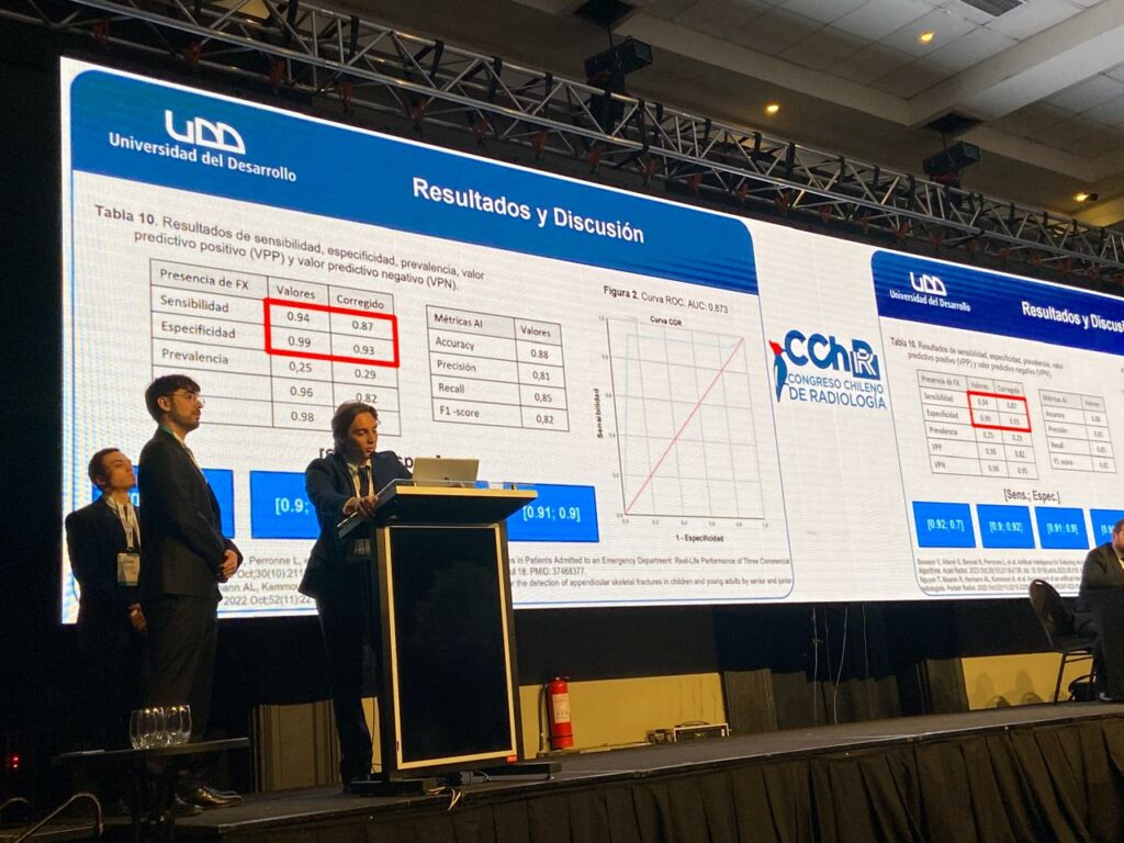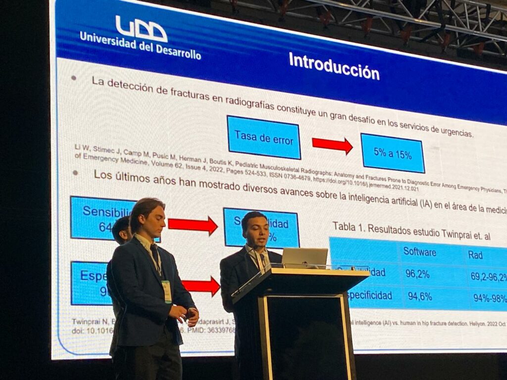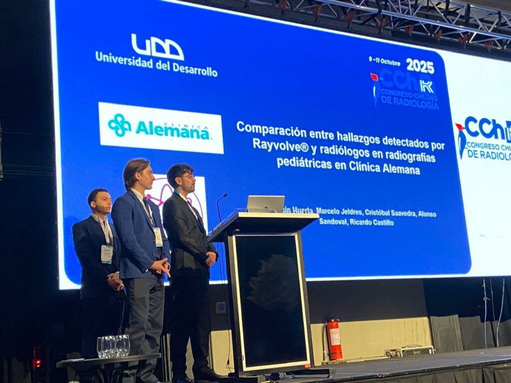 Los egresados Joaquín Huerta, Marcelo Jeldres, Cristóbal Saavedra y Alonso Sandoval presentaron su Seminario de Tesis titulado “Comparación entre los hallazgos radiográficos del software Rayvolve con los hallazgos detectados por el radiólogo en radiografías de estudios musculoesqueléticos (MSK) en pacientes pediátricos en Clínica Alemana”.