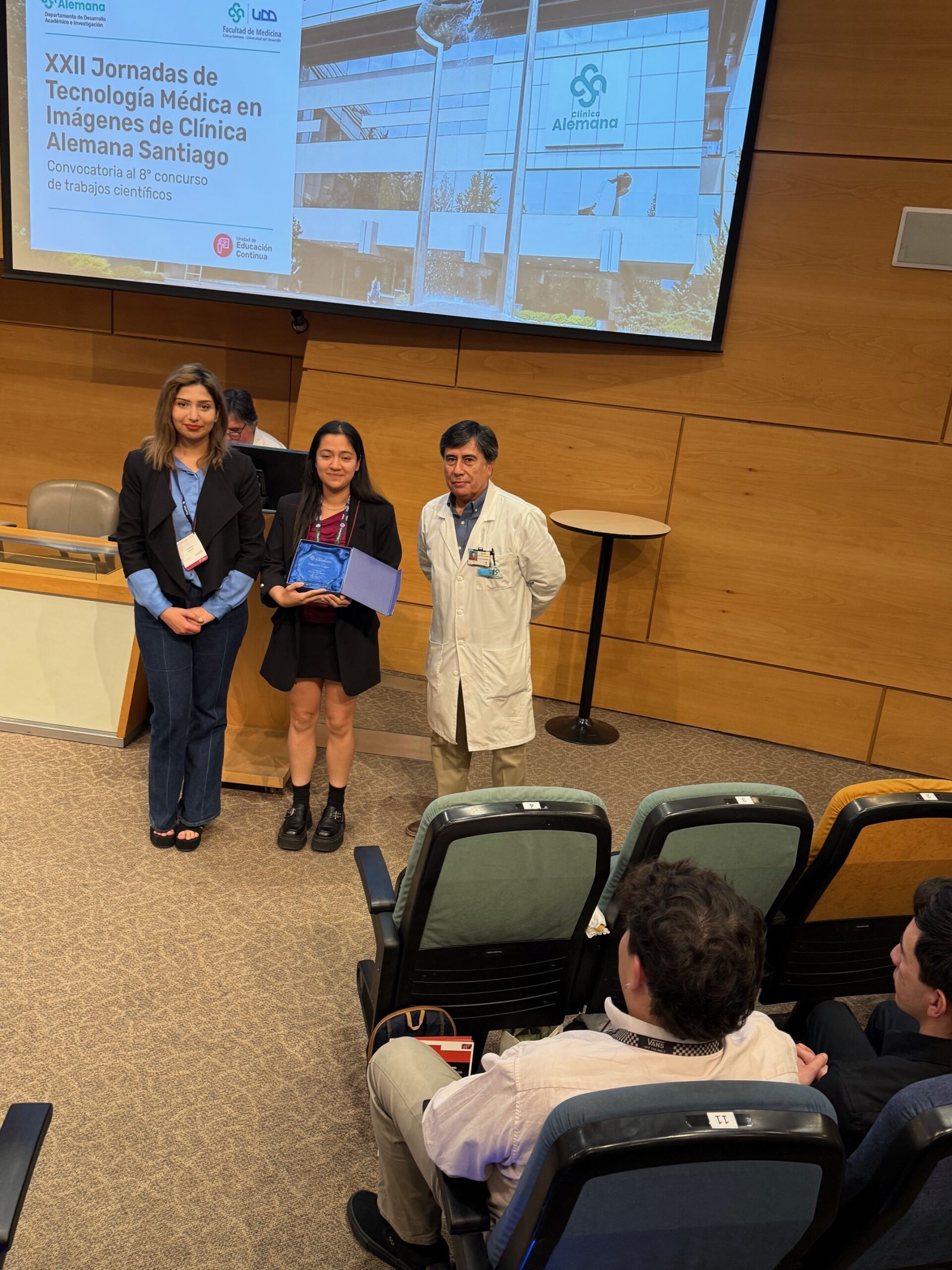 En el marco del evento, se desarrolló además la VII versión del Concurso Científico Nacional e Internacional, instancia en la que Tecnología Médica UDD obtuvo el primer lugar por votación del público con la tesis “Fantoma de Pelvis homologable a tejido humano”, presentada por Isidora Swett, destacando el compromiso y la calidad investigativa de la formación impartida por la carrera.