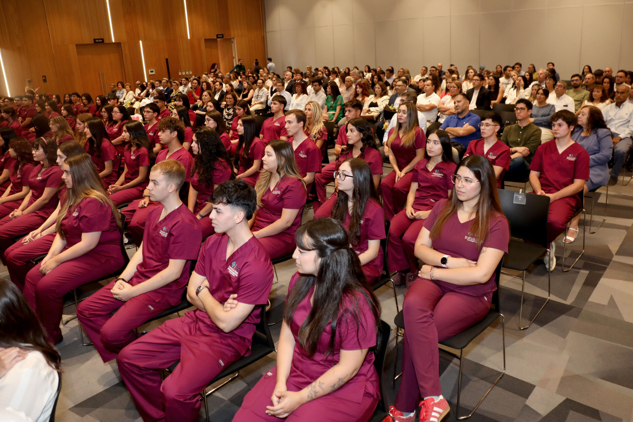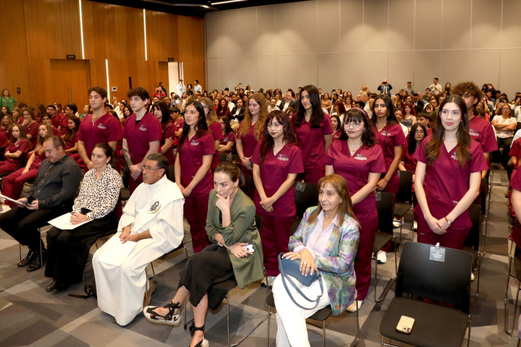 Durante la ceremonia, autoridades académicas, encabezadas por la vicedecana de las carreras de la salud, Dra. Liliana Jadue Hund, y la directora de la carrera, María Adriana Parra Blanco, destacaron la relevancia de esta etapa en la formación profesional, enfatizando tanto los aspectos académicos como actitudinales que requiere el ejercicio de la disciplina. Asimismo, los estudiantes recibieron la bienvenida de los coordinadores de sus distintas especialidades, quienes los invitaron a asumir con responsabilidad y compromiso este nuevo desafío.