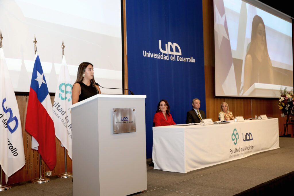 En su discurso, la decana de la Facultad de Medicina Clínica Alemana UDD, Dra. Marcela Castillo, relevó el significado de este momento y el impacto que tendrán en la sociedad: