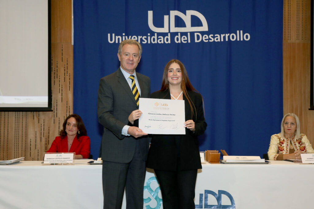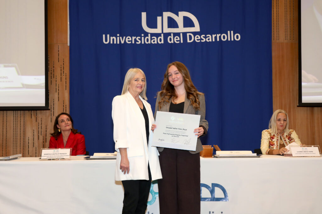 Asimismo, se realizó la entrega del Premio a la Excelencia Universidad del Desarrollo, reconocimiento otorgado a aquellos estudiantes que destacaron por su rendimiento académico, compromiso y sello formativo durante su paso por la universidad.